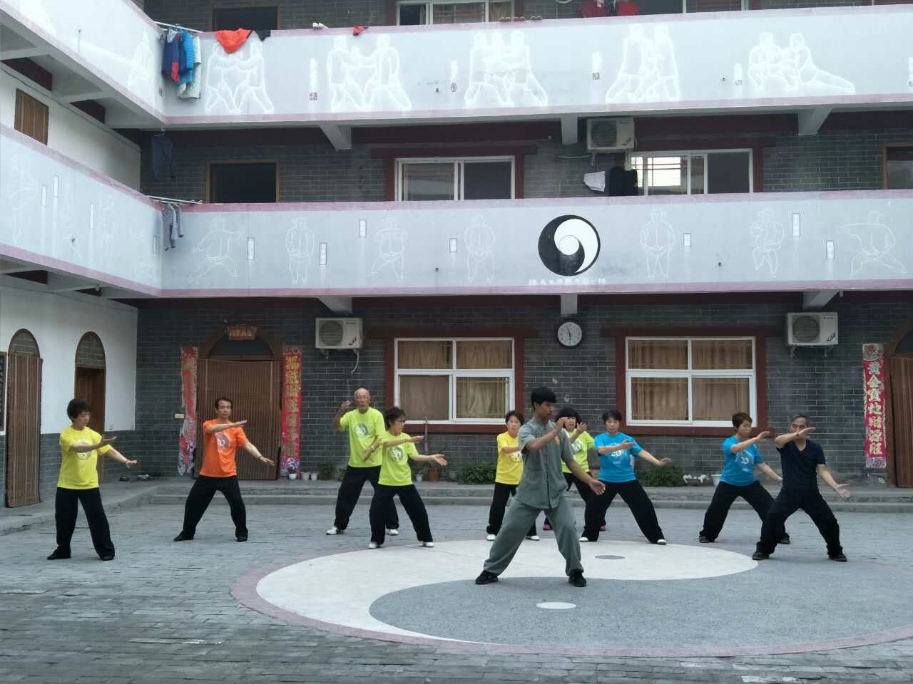 さて、いよいよこの太極拳のふるさとで直接本場の指導者に特別指導いただく時が来ました。場所は「陳家溝国際太極院」というところで、四天王のひとり陳小旺が名誉院長を務め、国内外の多くの大会でチャンピオンを輩出している太極拳専門学院です。私たちを指導してくれたのは、その中でも特に実力のある任攀峰コーチでした。なかなかのイケメンで女性陣は大喜び、熱心に練習に取組んでいました。内容は「放松功」が中心で体の力を抜き、リラックスした状態で行う基本動作を、王老師の通訳の下、丁寧に指導して下さいました。
