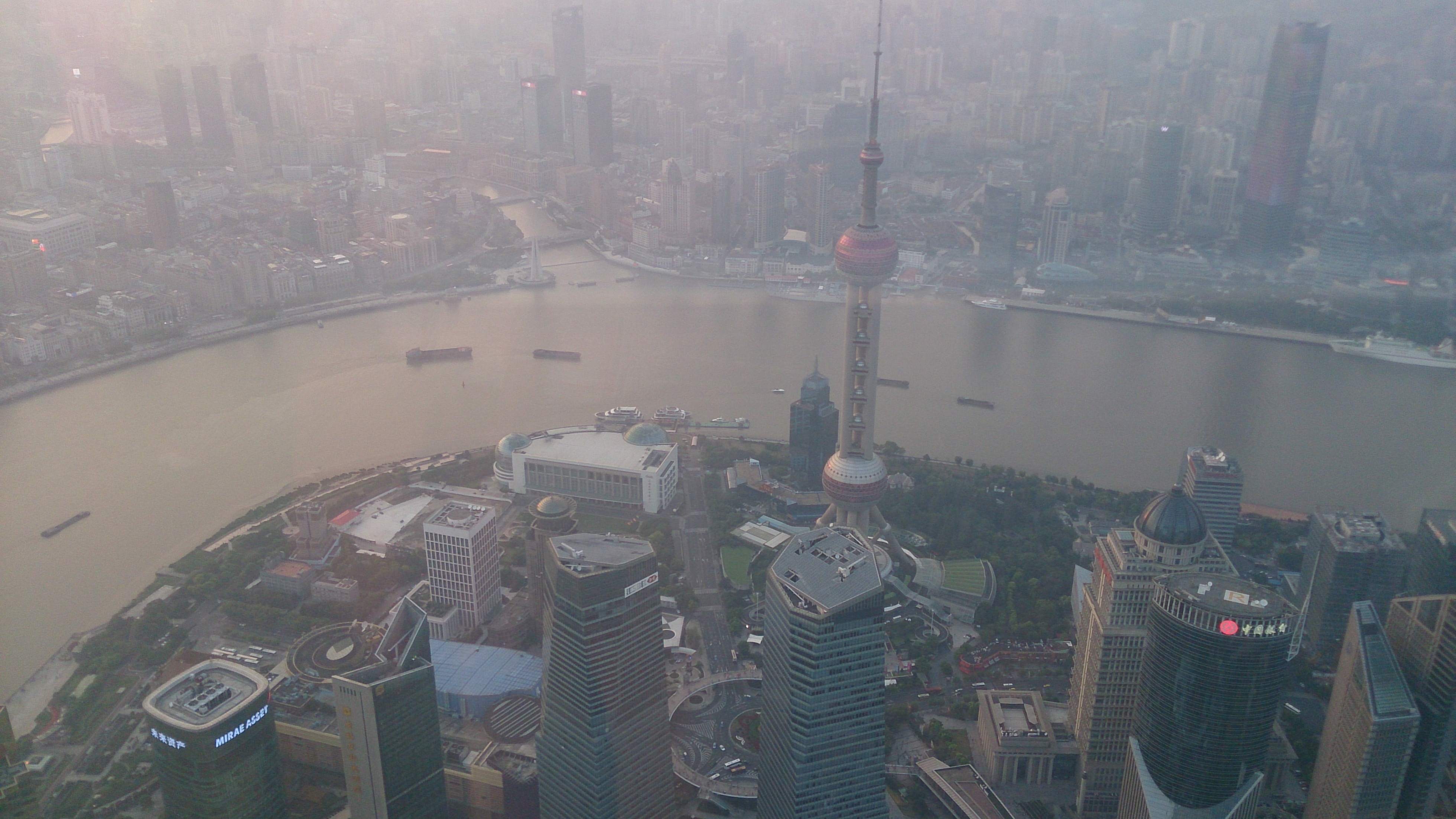 上海虹橋空港で待ち構えていたのはしっかり者のガイド龚淋淋(キョウ リンリン)さん。午前中には到着する予定が既に午後3時を回っていましたので、その遅れを挽回すべくスケジュールを調整、水郷の街朱家角は翌日に変更し、先ずは世界第2位の高さ(632メートル)を誇る今年完成したばかりの上海タワーへ直行。中国の国際金融センターとして開発が進み、多くの高層ビルが林立する浦東陸家嘴地区の中でもひと際高く聳える上海タワーの展望台から望む景色は圧巻でした。が、残念ながら中国名物?のスモッグで遠くまでは見渡せません。