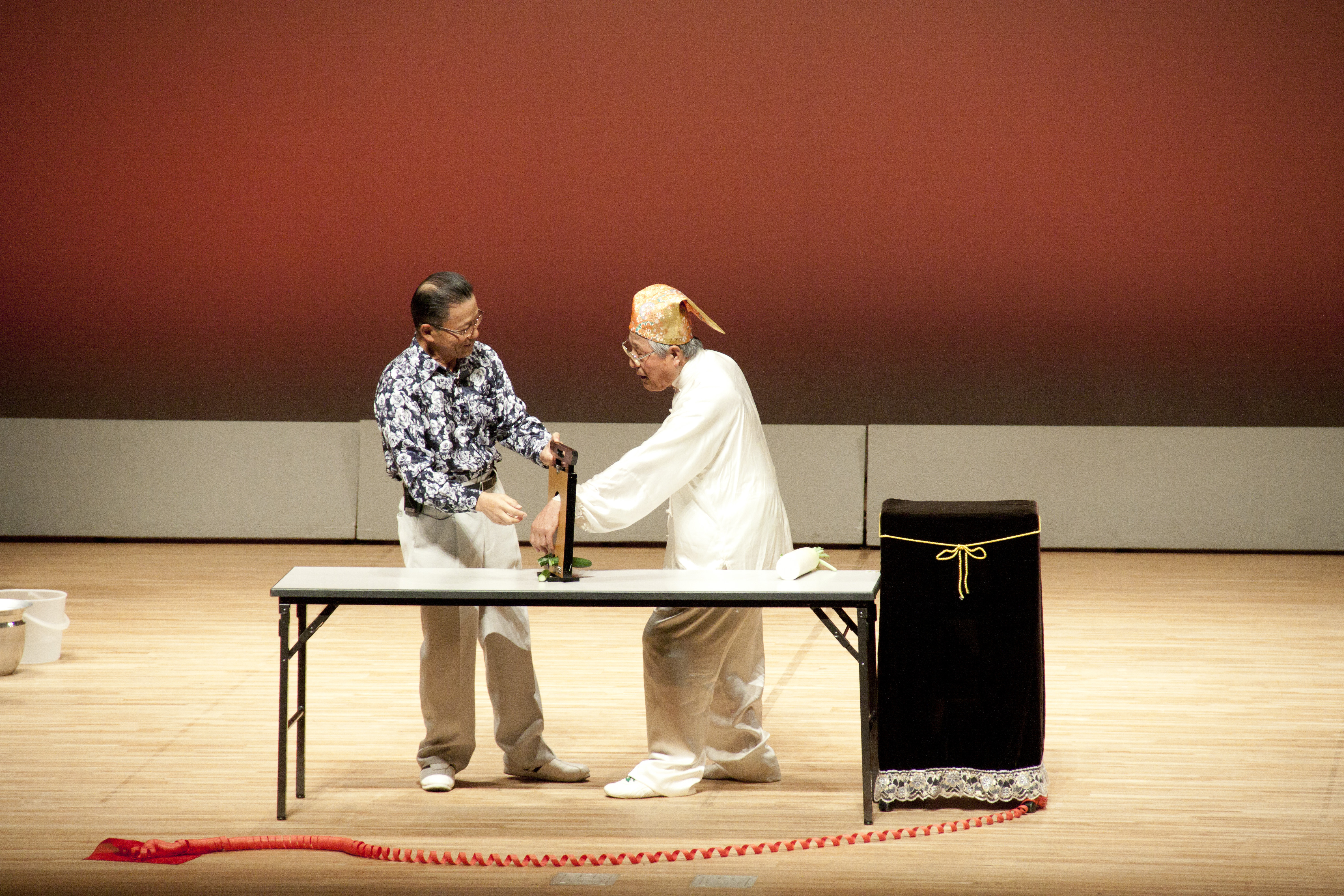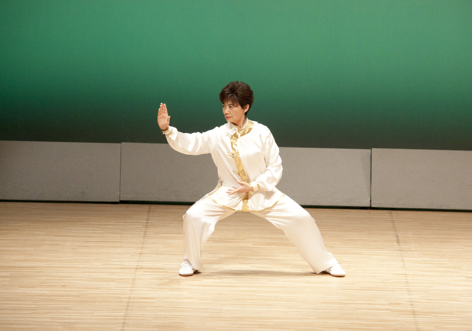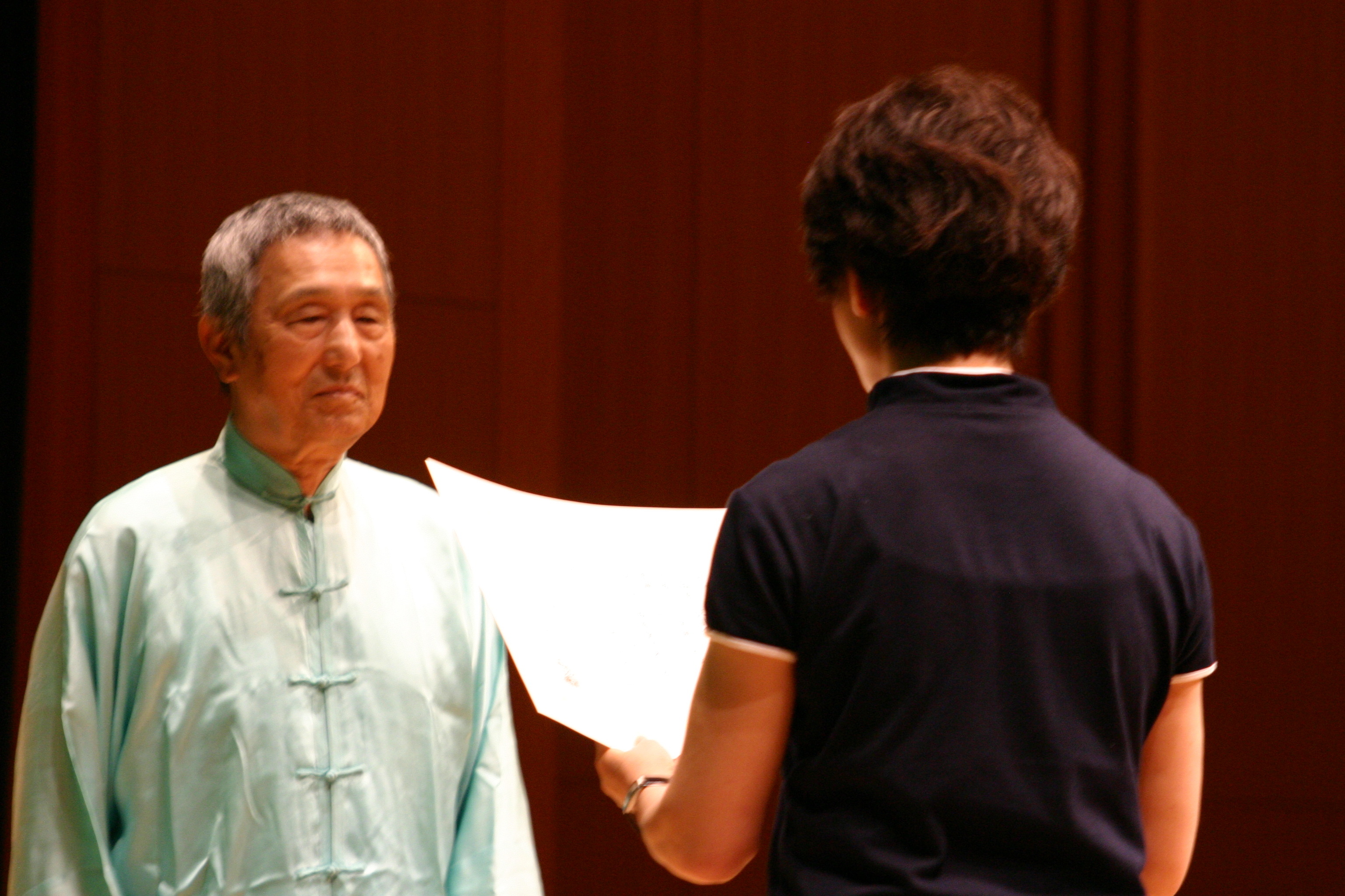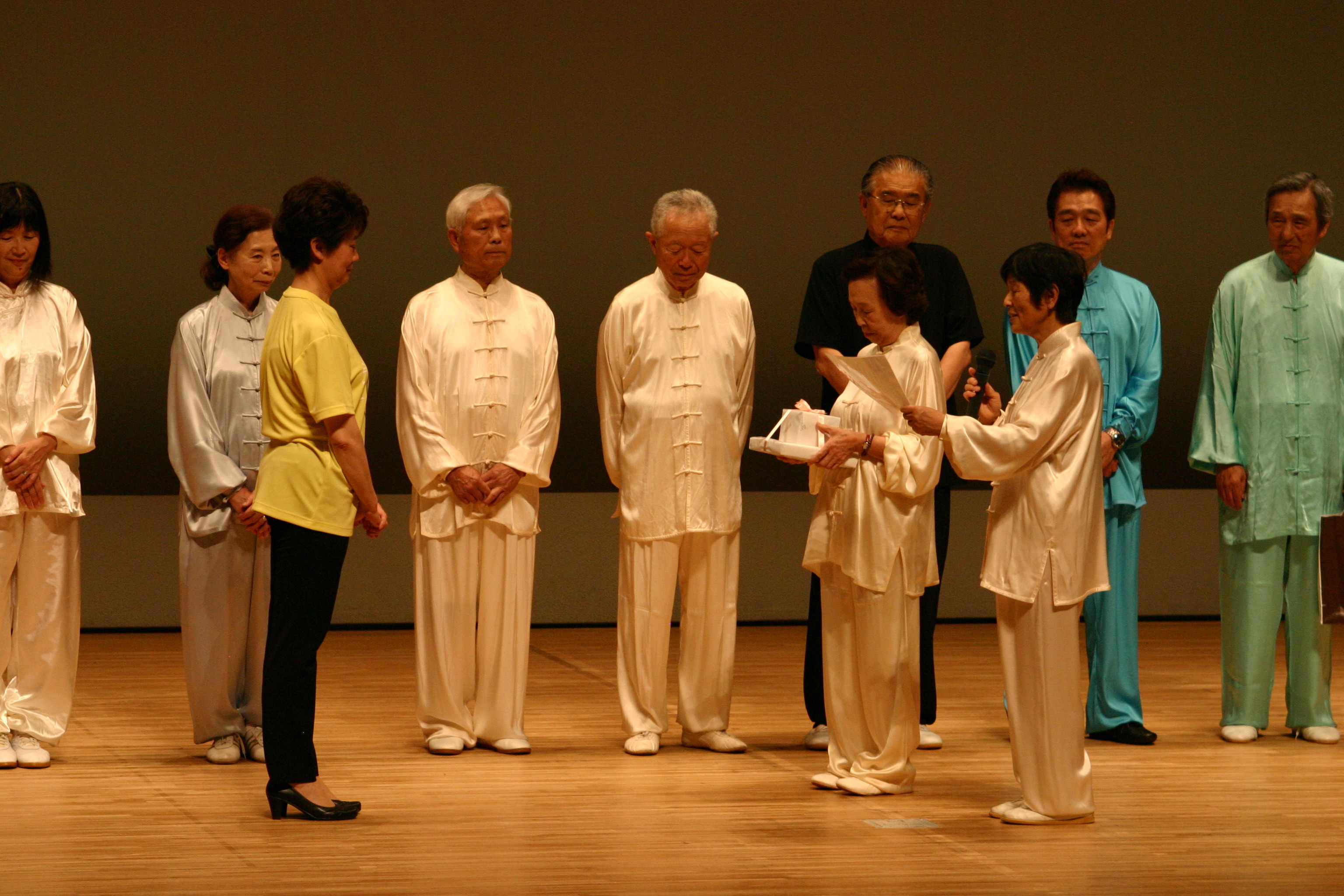 堂々とステージに立つと、多くの拍手が送られました。姿勢が良くて、下半身も安定して、年齢を感じさせない演武でした。